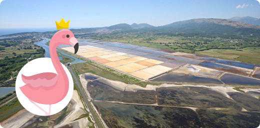 На не используемой территории солеварни им. Байо Секулича организован заповедник, а озеро Солана, из которого выпаривали соль, осталось. С тех пор там и поселились фламинго. | | |