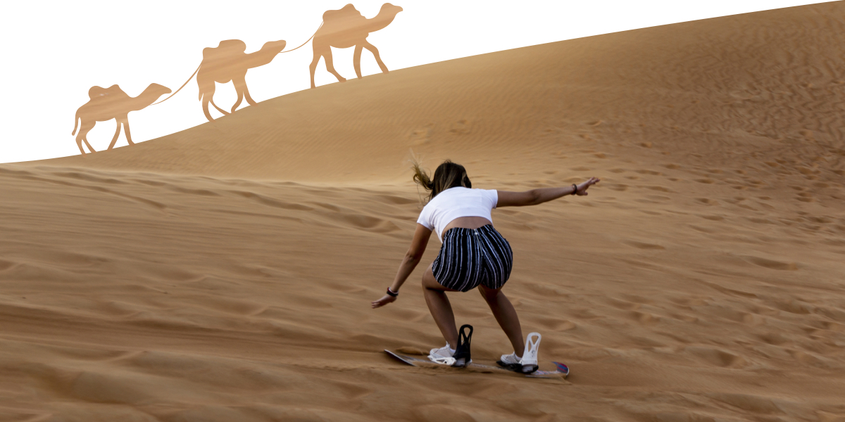 | Вы можете поехать в крытый горнолыжный комплекс Ski Dubai и развлекаться на искусственном снеге... Но зачем, когда в Эмиратах есть занятие интересней? Отправляйтесь лучше на сэндборд. |